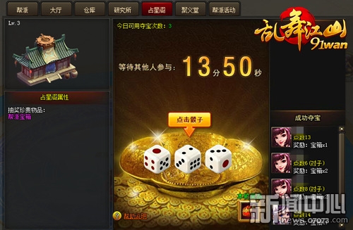 ¡¡¡¡Èý¹«£¬°ÎÑÀ£¬Å£Å££¬´ó»°÷»£¬Æß°Ë¾Å£¬¶íÂÞ˹ÂÖÅ̶ą…Èý´ÎÔªÖеÄ÷»ÖÑÒѾ¿ìÒª±»ÎÞËù²»ÄܵĵØÇòÈËÍæ»µÁË£¬¶ø¶þ´ÎÔªµÄ÷»ÖѸոÕÍê³ÉÂÒÈë¡£ÔÚ91wan¡¶ÂÒÎè½É½¡·°ïÅÉϵͳµÄÕ¼ÐǸóÖУ¬Ã¿12·ÖÖÓ»á²úÉúÒ»¸ö±¦Ï䣬°ïÅÉËùÓгÉÔ±¾ù¿É²ÎÓë¶á±¦ÇÀ±¦ÏäµÄ»î¶¯¡£°´ÕÕ¹æÔò£¬Ã¿ÂÖµãÊý×î¸ßÕß»ñʤ£¬µãÊýÏàͬʱÔòÏÈͶÖÀÕß»ñʤ¡£ÈôÊÇ»ñʤÕßÒ¡³öµÄµãÊýÀï°üº¬ÓжÔ×Ó¡¢Ë³×Ó»òÕß±ª×Ó£¬»¹ÓжîÍâµÄ¶à±¶½±ÀøÅ¶£¡