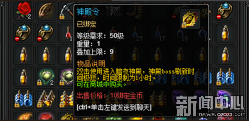 在进入之前,得先准备好东西。其中最为重要的两样物品就是随机传送石和药水了,前者方便七杀玩家在神殿里面寻找boss,后者可以保证生命的持续性。这两样物品购买好之后,再使用技能加一些攻击和防御,然后才点击令牌进入神殿吧。