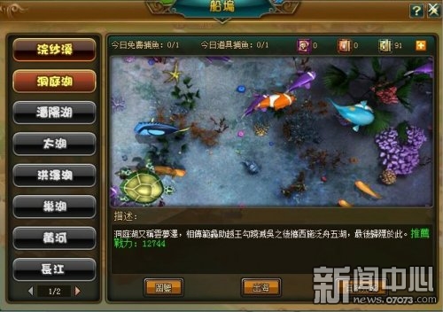玩家通過建立的漁業分城中的“船塢”進入活動介面,選擇出海地圖後進入相應海域即可開始捕魚,海量武將經驗全藏匿在各類深海魚種中。